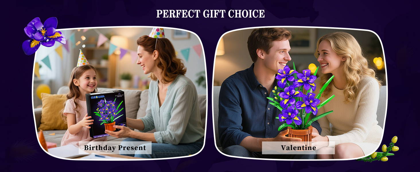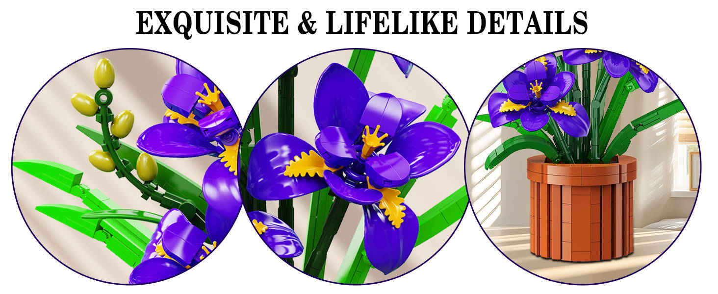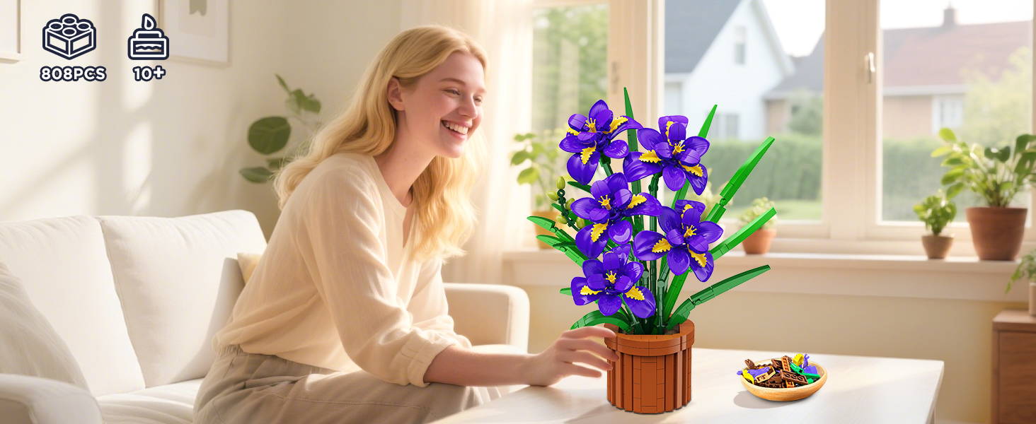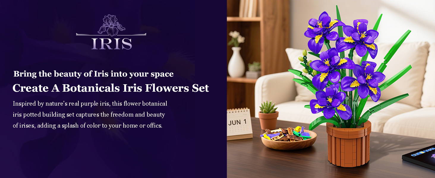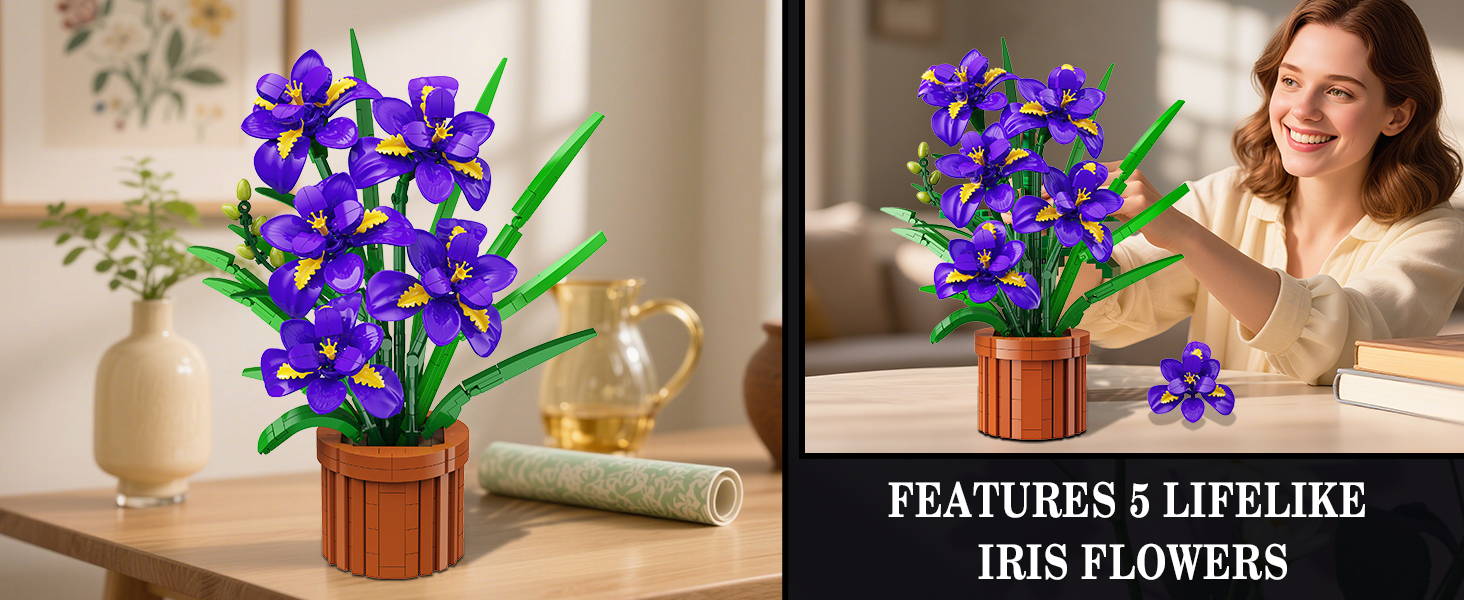 This iris bonsai flower building set makes a heartfelt gift for your partner, parent, or dear friend - or for birthdays, anniversaries, Valentine's Day, Mother's Day, Christmas Day, and any special moment.