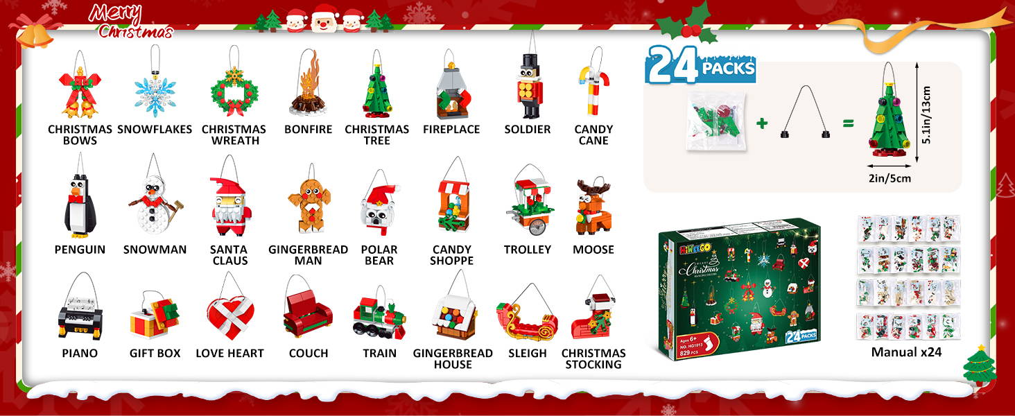 Each model is individually packaged and includes a detailed colorful instruction manual, helping kids easily assemble vibrant Christmas trees, snowmen and other decorations.