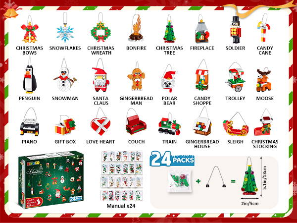 This Christmas hanging ornament building set comes with strings, perfect for adorning Christmas trees, wreaths, fireplaces, potted plants and porches.
