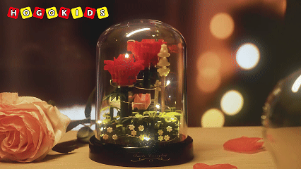 This is a bouquet of bricks built in the cover. The beautiful rose in the cover is perfect and eternal, without impurities. The base surface is stable and smooth. The cover and base are easy to clean.