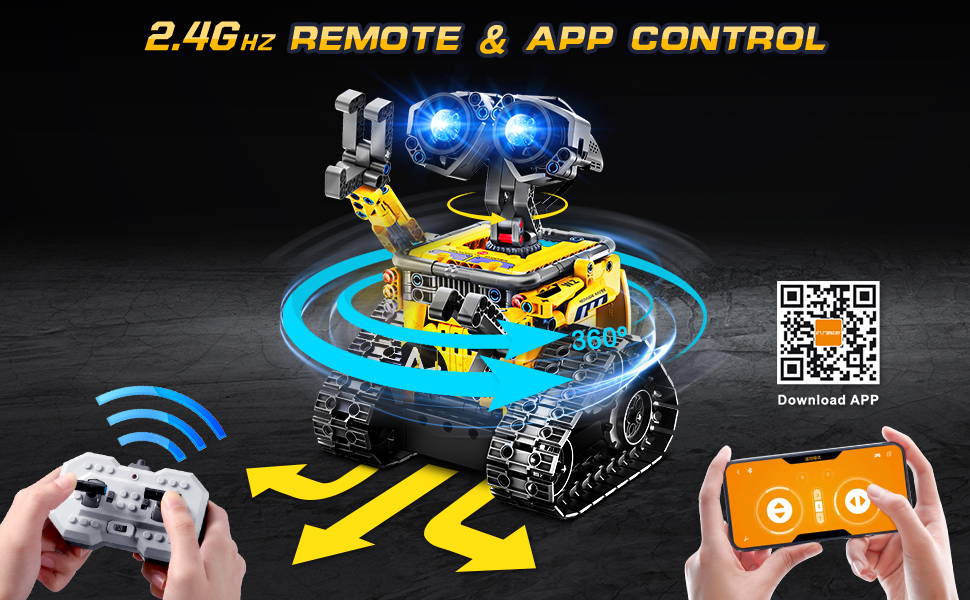 No child will say no to a moving toy. The robot building kit can be controlled by remote control (control distance over 30 meters) or APP connection, which allows the vehicle to move in all directions indoors and outdoors, forward or backward freely, turn left or right freely, fun for children.