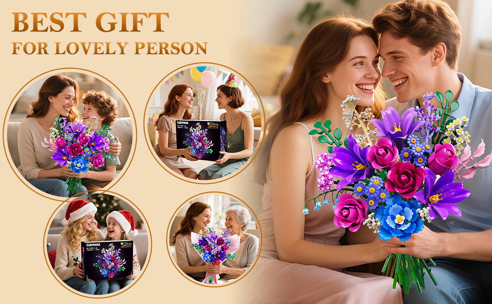 CUBIMANA Flower Bouquet – a creative building kit that symbolizes eternal love and beauty. Perfect for adults and kids 12+, ideal for Valentine’s Day, Mother’s Day, birthdays, anniversaries, or any special occasion.